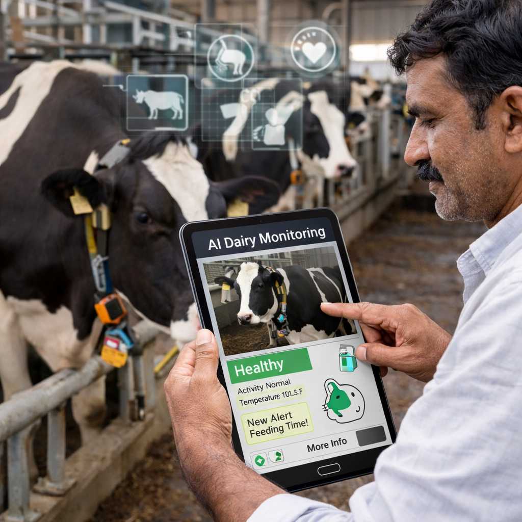 Introduction Dairy farming plays a crucial role in agricultural economies, especially in countries like India. However, traditional dairy management often depends on manual observation, which can lead to delayed disease detection, poor breeding decisions, and inefficient milk production. Artificial Intelligence (AI) is transforming dairy farming through AI-based livestock monitoring...